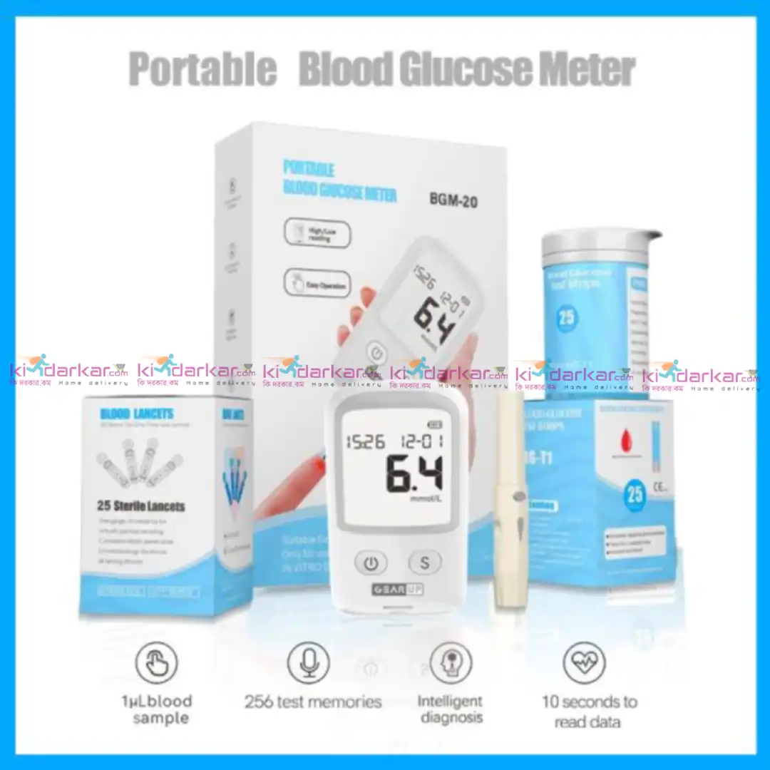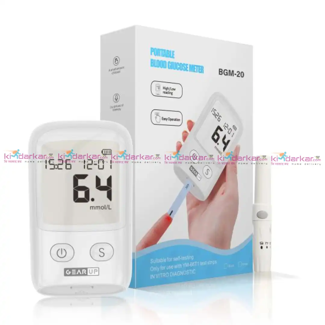 Take control of your blood sugar monitoring with the GearUP Glucose Meter (BGM-20) â a reliable, accurate, and user-friendly solution designed for everyday diabetes care. With a simple setup, clear display, and advanced features, this glucose meter makes home sugar testing easier and faster than ever.